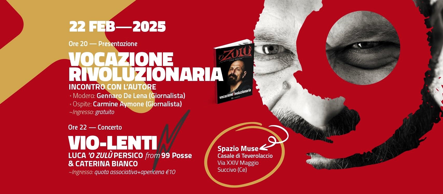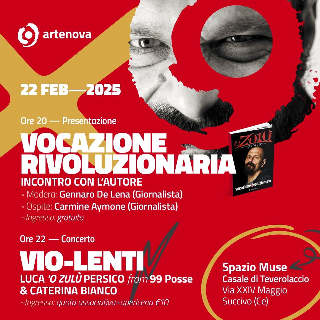 Una vita intera dedicata alla musica, alle battaglie politiche in difesa degli ultimi e dei più deboli, ma soprattutto al miglioramento e al superamento di se stessi. Con queste poche semplici parole può essere descritta la lunga carriera artistico-musicale di Luca Persico, meglio noto come ‘O Zulù, rapper e frontman della storica band partenopea 99 Posse, gruppo fondato nel 1991 e da oltre trent’anni protagonista della scena musicale alternativa italiana. Una lunga carriera ricca di avventure e di soddisfazioni, ma anche piena di “tarantelle”, quelle che lo stesso Luca Persico ha vissuto e raccontato nel suo lavoro autobiografico Vocazione rivoluzionaria, edito dalla casa editrice Il Castello.