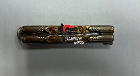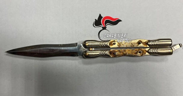 Quattordici anni appena, ma già andava in giro armato: in tasca aveva un coltelloa farfalla lungo complessivamente 23 centimetri di cui 10 di lama.