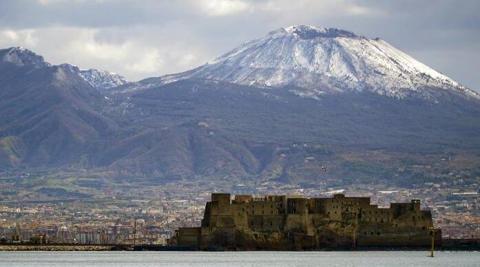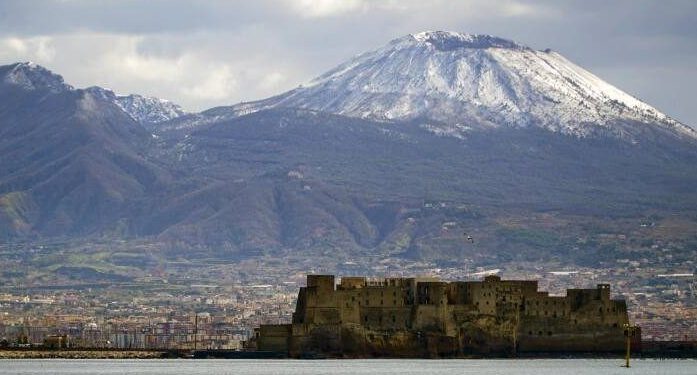 C’è di nuovo una coltre bianca a tempestare la cima del Vesuvio. È il prodotto della nuova perturbazione che questa notte ha portato ad un crollo repentino delle temperature in tutta la regione, con piogge abbondanti già previste dall’allerta meteo gialla emanata nella giornata di ieri.