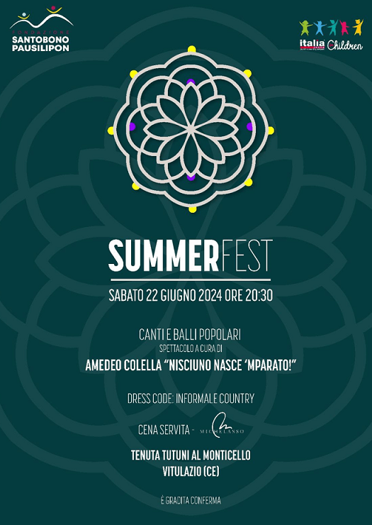 Nel cuore del Casertano, per il secondo anno consecutivo, torna il ‘Summer Fest 2024’: iniziativa di beneficenza, promossa dall’onlus Italia Paghe for Children, è dedicata a raccogliere fondi a favore della Fondazione Santobono Pausilipon di Napoli, con l’obiettivo di sostenere la ricerca oncologica pediatrica.