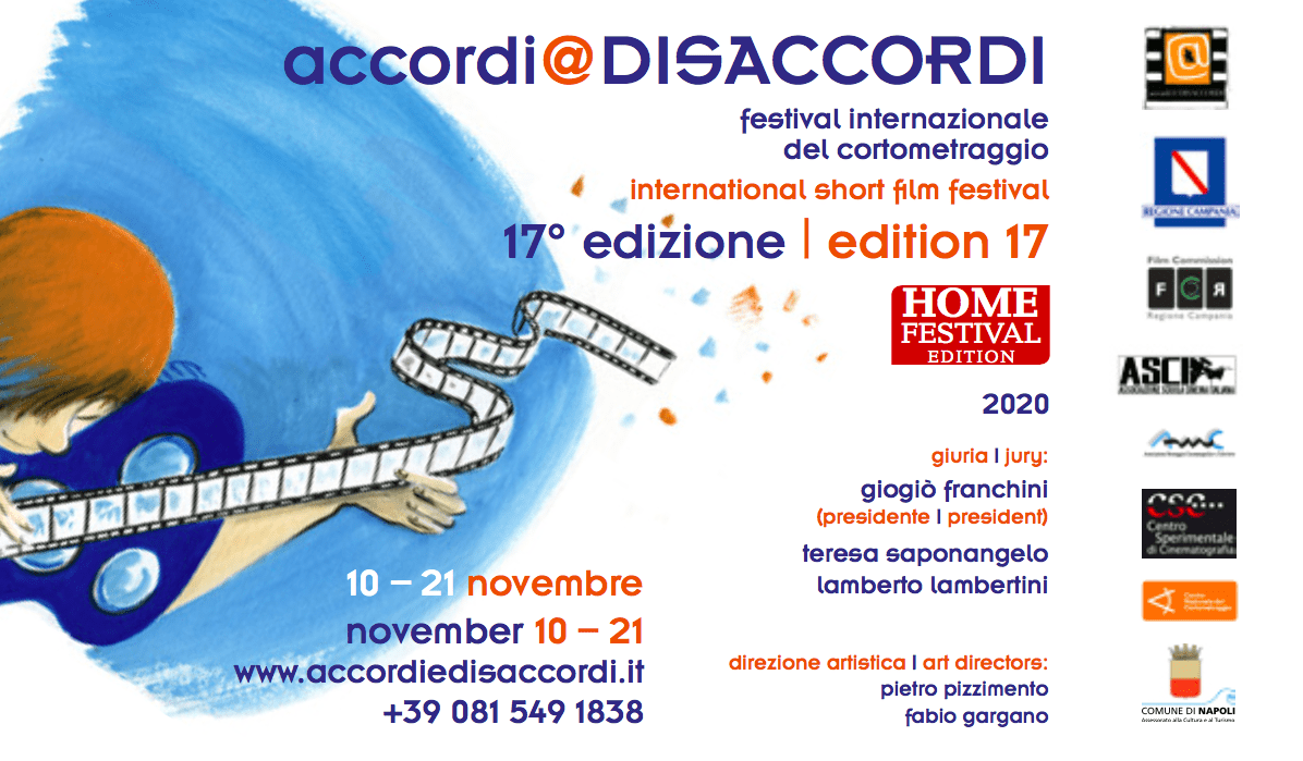 Prende il via domani, fino al 21 novembre, la diciassettesima edizione di Accordi @ disaccordi, il festival internazionale del cortometraggio diretto a Napoli da Pietro Pizzimento e Fabio Gargano, quest’anno costretti ad affrontare una sfida inedita: quella di un’edizione totalmente online. Grazie alla piattaforma Festhome, tutti i contenuti, dai film ai documentari, sono infatti visibili sul web. Il festival si presenta con un programma ricco e variegato, formato da diverse sezioni con 128 film brevi, i quali rappresentano 27 nazioni: è questo, infatti, il risultato finale dopo 3.721 cortometraggi pervenuti, in rappresentanza di 116 Paesi.