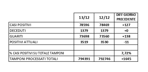 Report Covid-19 – Elaborazione effettuata il 14 dicembre 2021