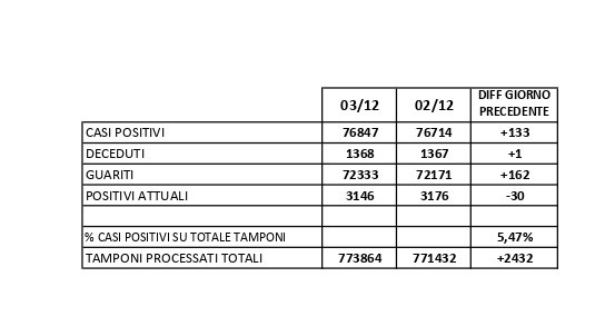 Report Covid-19 – Elaborazione effettuata il 04 dicembre 2021