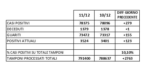 Report Covid-19 – Elaborazione effettuata il 12 dicembre 2021