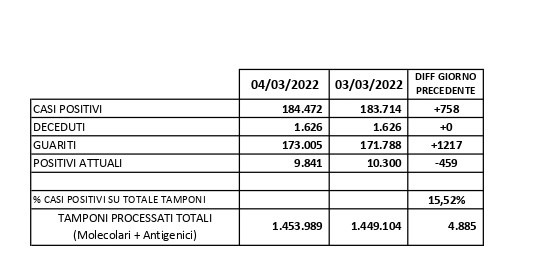 Report Covid-19 – Elaborazione effettuata il 05 marzo 2022