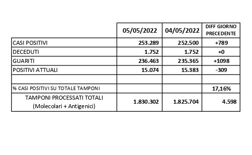 Report Covid-19 – Aggiornato al 06/maggio/2022