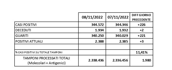 Report Covid-19 – Aggiornato al 09/novembre/2022