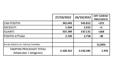 Report Covid-19 – Aggiornato al 28/ottobre/2022