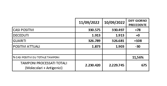 Report Covid-19 – Aggiornato al 12/settembre/2022