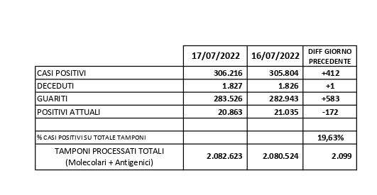 Report Covid-19 – Aggiornato al 18/luglio/2022