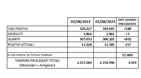 Report Covid-19 – Aggiornato al 3/agosto/2022