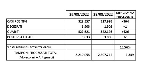 Report Covid-19 – Aggiornato al 30/agosto/2022