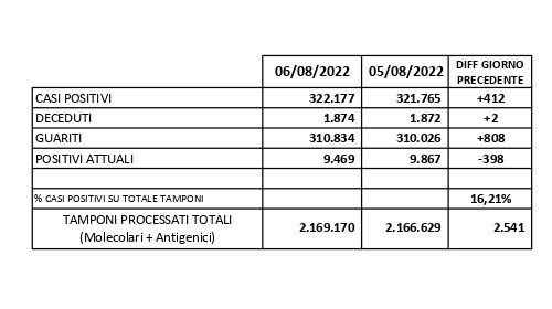 Report Covid-19 – Aggiornato al 07/agosto/2022