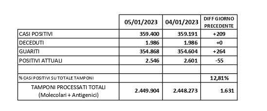Report Covid-19 – Aggiornato al 06/gennaio/2024
