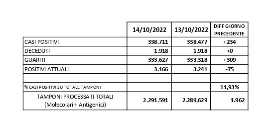 Report Covid-19 – Aggiornato al 15/ottobre/2022