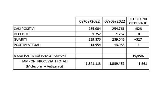 Report Covid-19 – Aggiornato al 09/maggio/2022