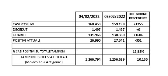Report Covid-19 – Elaborazione effettuata il 05 febbraio 2022