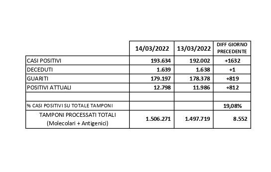 Report Covid-19 – Elaborazione effettuata il 15 marzo 2022
