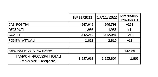Report Covid-19 – Aggiornato al 19/novembre/2022