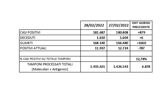 Report Covid-19 – Elaborazione effettuata il 01 marzo 2022