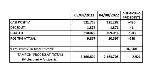 Report Covid-19 – Aggiornato al 06/agosto/2022