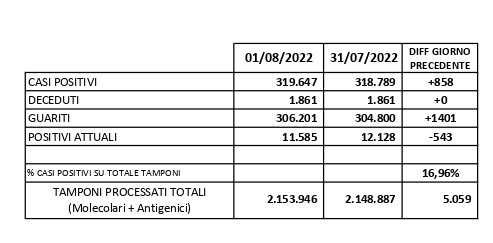 Report Covid-19 – Aggiornato al 2/agosto/2022