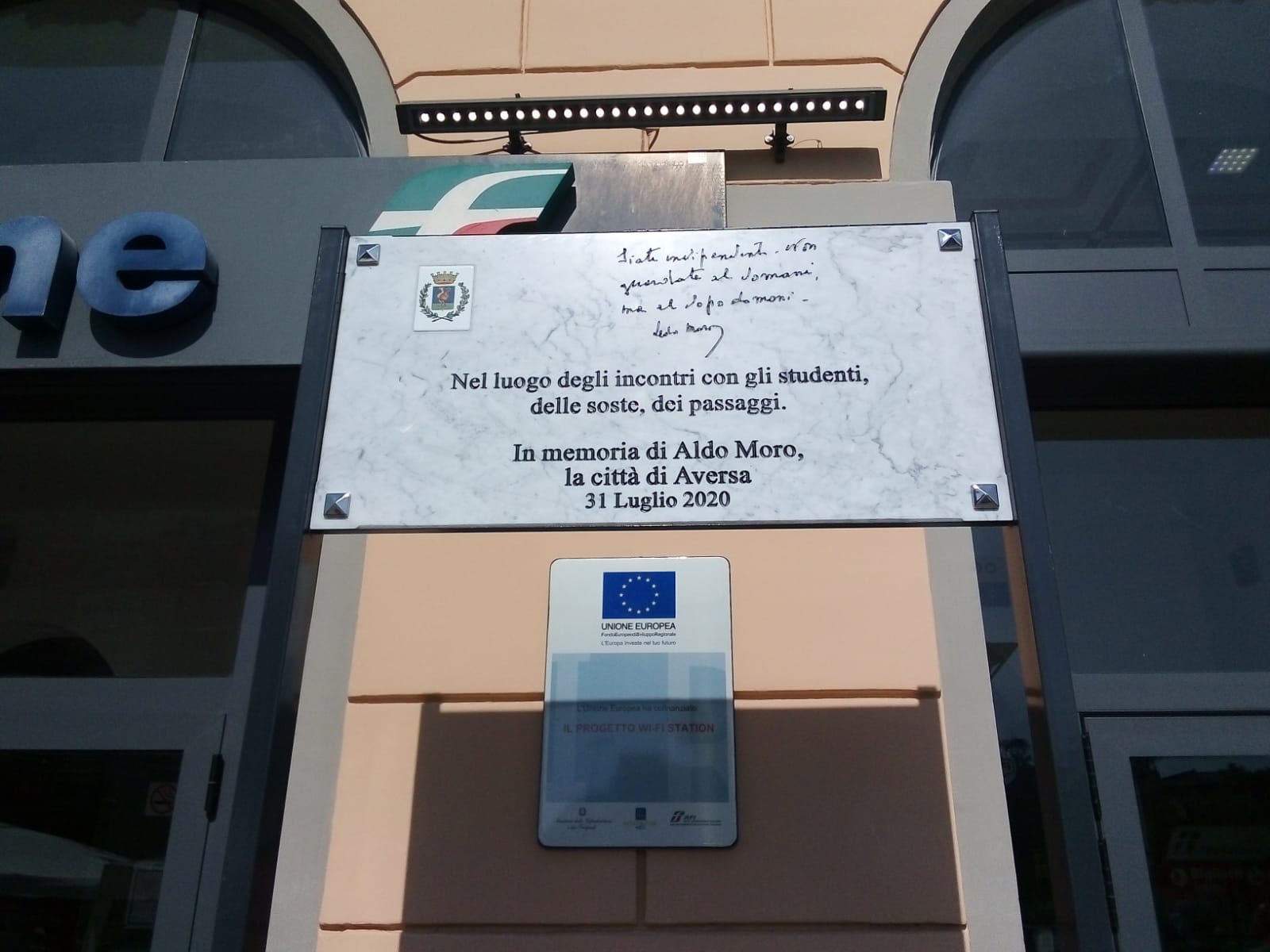 “Siate indipendenti. Non guardate al domani, ma al dopodomani”. La frase di Aldo Moro campeggia da questo pomeriggio davanti all’ingresso della stazione di Aversa: qui è stata posta una targa ricordo, nel luogo in cui lo statista della Dc rapito e ucciso dalle Brigate rosse si fermava a parlare con gli studenti durante una delle tante soste nella città normanna, in attesa di prendere il treno che lo avrebbe riportato in Puglia. A scoprire la targa sono stati il sindaco di Aversa Alfonso Golia e il ministro dell’Università e della Ricerca, Gaetano Manfredi, alla presenza del vescovo della diocesi normanna monsignor Angelo Spinillo. Una cerimonia che ha visto la partecipazione di numerose autorità civili e militari, fra cui il prefetto di Caserta Raffaele Ruberto, di cittadini, docenti e studenti delle università Federico II e Vanvitelli. A porgere per primo i saluti e i ringraziamenti ai presenti è stato il presidente del consiglio comunale di Aversa Carmine Palmiero, che ha ricordato Moro come “uomo che va al di là di ogni ideologia”. Subito dopo aver scoperto la targa ha preso la parola il primo cittadino aversano: “La memoria delle persone ci consente di essere uomini liberi – ha esordito Golia – e la frase riportata sulla targa ricorda a tutti noi che non basta essere impegnati nell’oggi , ma dobbiamo avere la capacità di programmare per il futuro. In questo luogo Moro non perdeva mai l’occasione di incontrare gli amici e i propri studenti. Con queste soste Moro dimostrava un forte legame con la nostra città e la sua curiosità lo portava ad essere attratto dal mondo della psichiatria. Varie volte, infatti, ha visitato con gli studenti l’Opg di Aversa. La città, in ritardo, appone questa targa come ringraziamento all’uomo, allo statista, al professor Aldo Moro”.