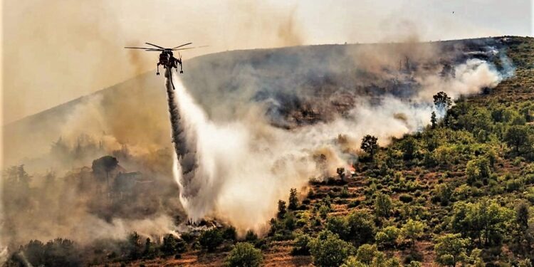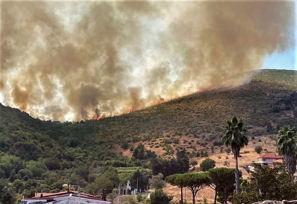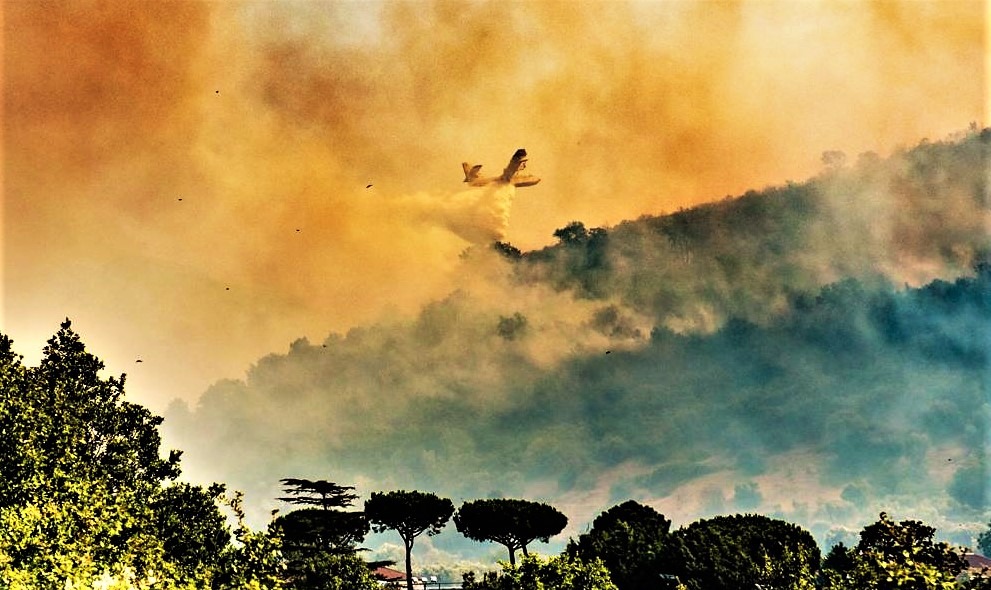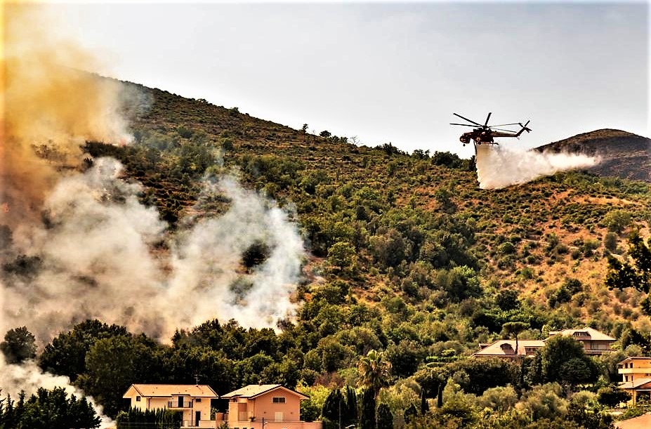 Il Casertano continua a bruciare e le fiamme non sembrano dare alcuna tregua nemmeno alla vigilia di Ferragosto. Gli incendi hanno colpito nuovamente i monti Tifatini, già devastati nei giorni scorsi da un grosso incendio che ha mandato in fumo decine di ettari di vegetazione con un danno ambientale enorme. Quest’oggi, infatti, a bruciare sono state le catene montuose a ridosso della città di San Leucio, poco distante dal capoluogo. Sul posto, per domare le fiamme che hanno lambito svariati ettari di terreno, sono intervenute diverse squadre dei vigili del fuoco supportate, come si può ben vedere dalle immagini, da un elicottero anti-incendio del nucleo elicotteristi di Pontecagnano e da un canadair inviato da Roma al fine di evitare che venissero coinvolte nell’incendio anche le abitazioni vicine. Ulteriori roghi hanno colpito in queste ore anche le aree interne del Sannio e il monte Epomeo a Ischia, intimorendo i turisti presenti sull’isola. Sono giorni tragici, dunque, per la Campania e l’emergenza incendi in tutto il Sud Italia non sembra arrestarsi, alimentata non solo dal forte caldo di questi giorni ma anche dalla mano responsabile dell’uomo.