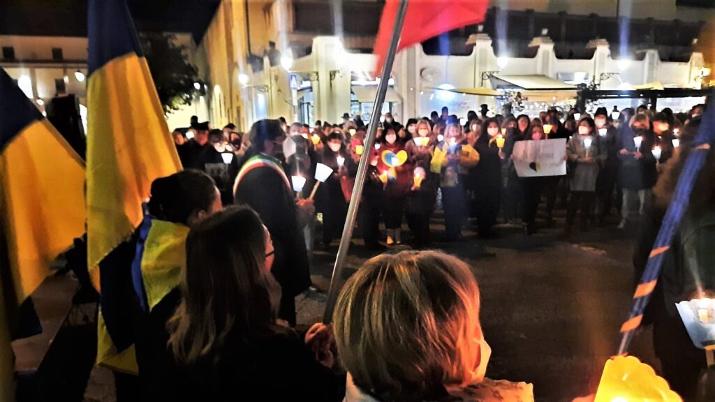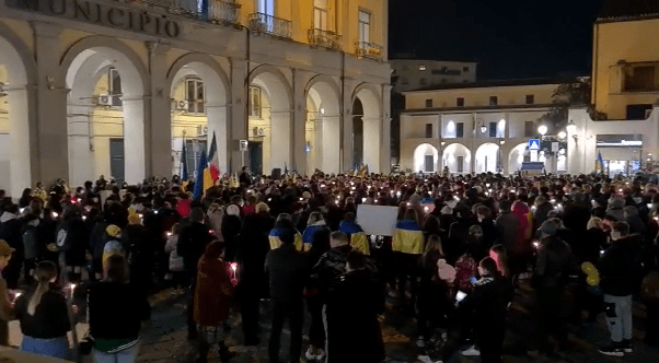 Ci sono stati attimi e momenti di commozione in piazza, con le mamme ucraine e i loro bambini che con le loro fiaccole hanno illuminato questi giorni bui per l’Ucraina, per l’Europa e per il mondo intero. I piccoli sono scesi in piazza reggendo diversi cartelli nei quali chiedevano esplicitamente il ritiro delle truppe dal loro Paese e la fine di ogni ostilità militare nei confronti di un popolo diviso tra coloro che sono rimasti, combattendo contro la fame e l’invasione, e coloro che sono scappati via, nel tentativo di mettere in salvo le loro fragili vite. Durante le celebrazioni e la marcia, alcuni cittadini ucraini hanno intonato diversi canti della loro tradizione popolare per accorciare le distanze tra Aversa e Kiev e lanciare parole di conforto e di vicinanza a chi, in queste ore, è costretto a nascondersi nei sotterranei, negli scantinati, nei bunker e nelle stazioni della metropolitana per sfuggire agli incessanti bombardamenti di queste ore. L’iniziativa si è svolta grazie al grande lavoro organizzativo dei volontari della Protezione civile di Aversa.