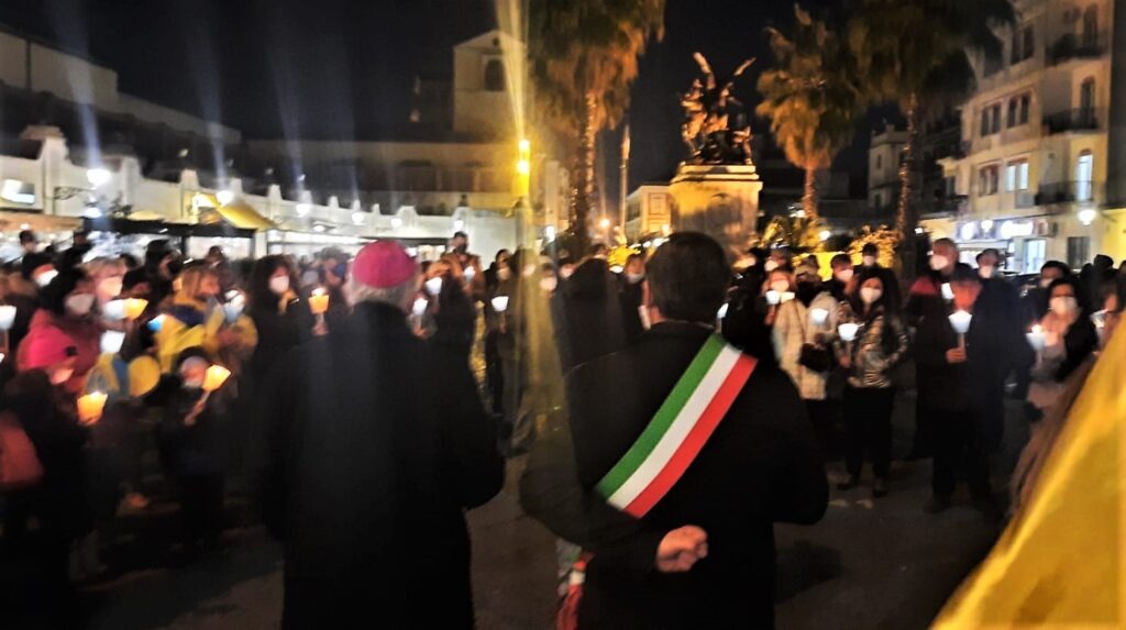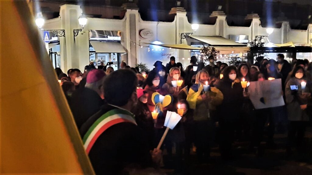Sono i momenti della vicinanza e della solidarietà nei confronti del popolo ucraino, il cui Paese è in questi giorni dilaniato da una violenta aggressione militare da parte dell’esercito russo ed è messo in ginocchio da un conflitto armato che nessuno vuole. Ed è proprio in questo clima di fratellanza e di sostegno verso un popolo che non ha nessuna colpa, se non quella di essere finito sotto le bombe e le mire espansionistiche di una potenza vicina, che i cittadini di Aversa sono scesi questa sera in piazza Municipio per dare vita a una fiaccolata che permettesse loro di manifestare contro l’orrore e l’errore di una guerra nel cuore dell’Europa orientale, e per ribadire che l’unica via d’uscita da questa dolorosa situazione è la promozione della pace tra popoli e nazioni. In piazza erano presenti questa sera anche il primo cittadino aversano Alfonso Golia assieme al vescovo di Aversa Angelo Spinillo per dare un segno tangibile di quanto, sia le istituzioni laiche che quelle religiose, siano contrarie alla guerra.
