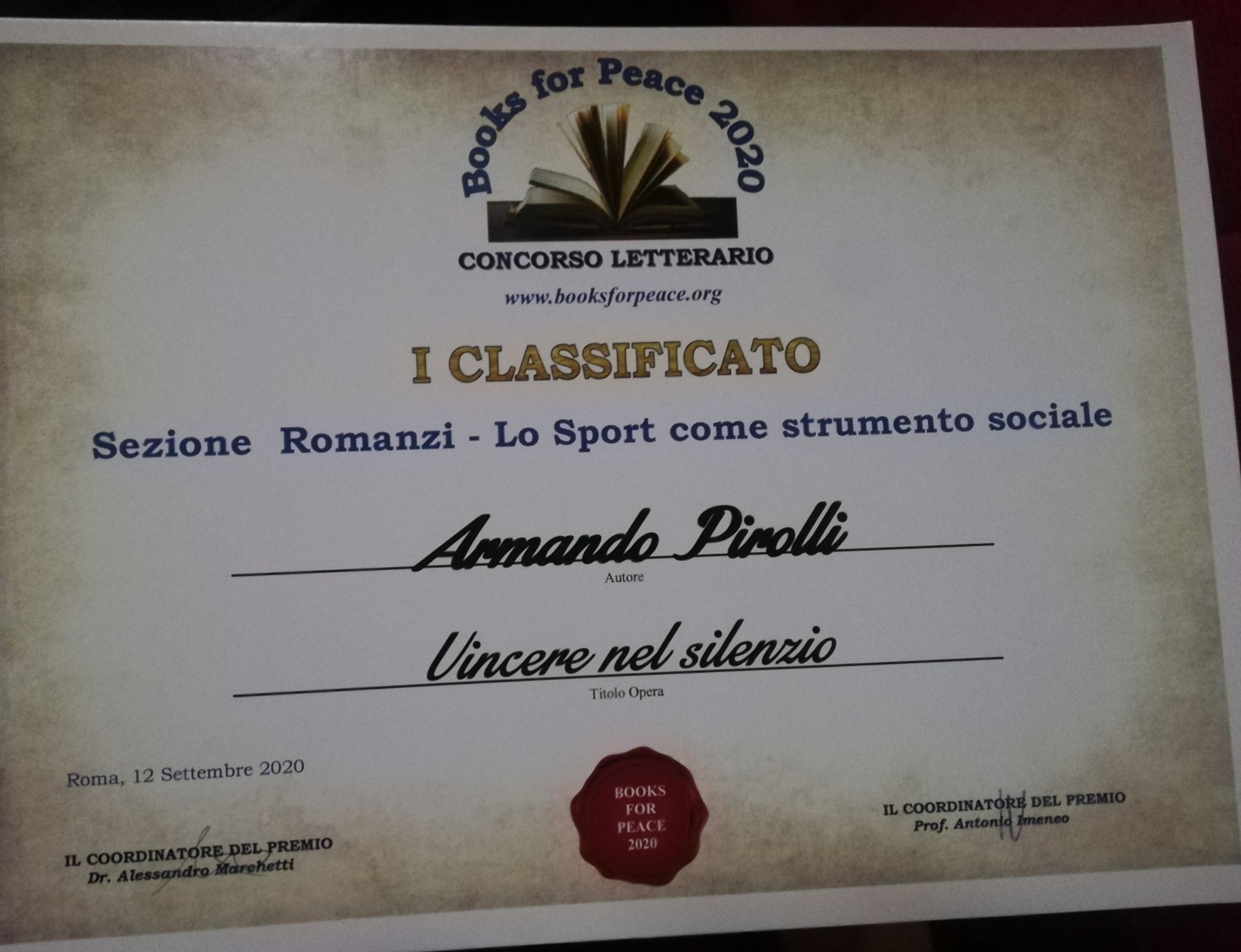 Sono state Aversa e Teverola le protagoniste della quarta edizione di Books for peace, il premio internazionale, fondato da Antonio Imeneo e Alessandro Marchetti, che ha come scopo quello di valorizzare i libri, la cultura, le persone, lo sport e l’arte e che hanno come comune denominatore la pace dei popoli e tra i popoli. Quest’anno a conquistare il riconoscimento è stato Armando Pirolli, di Aversa: la premiazione è avvenuta presso l’Auditorium di Santa Cecilia a Roma, dove si è svolta l’International competition award, con la presenza di diversi artisti e personalità dello sport e del mondo dello spettacolo. L’edizione di quest’anno si è rivolta all’arte e alla cultura patologica, all’integrazione, alla valorizzazione culturale e a tutti coloro che vivono una disabilità o una malattia psico-fisica o fisica: una tematica che ha messo in luce come sia possibile un punto di vista differente per guardare il mondo. Ma, soprattutto, un argomento delicato che Armando Pirolli ha saputo ben trattare nel suo Vincere nel silenzio, il romanzo biografico vincitore del premio speciale, in cui viene raccontata la vita e la storia sportiva di un ragazzo sordomuto di Teverola, in provincia di Caserta, edito e curato da Pasquale Gnasso Editore, anch’egli presente alla finale della kermesse.