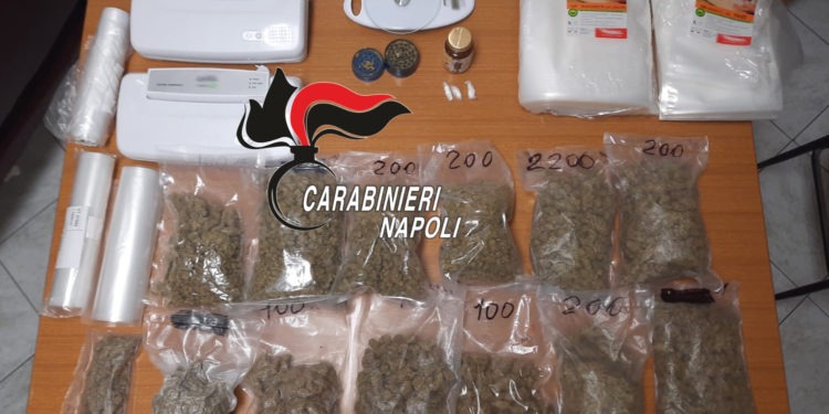 È accusato di detenzione di droga ai fini dello spaccio il quarantottenne incensurato di Barano d’Ischia arrestato dai carabinieri della stazione locale a seguito di una perquisizione domiciliare. Nella casa del fermato, infatti, i militari hanno rinvenuto e posto sotto sequestro 13 sacchetti per alimenti contenenti complessivamente circa 2 chili di marijuana, un dispositivo per sigillare le dosi sottovuoto, un bilancino di precisione e materiale vario per il confezionamento. Per l’uomo è scattata la misura cautelare degli arresti domiciliari. Sempre a Barano d’Ischia, i carabinieri hanno denunciato anche un trentaduenne pizzicato con 3 dosi di cocaina e materiali utili per la preparazione delle dosi e il taglio della droga.