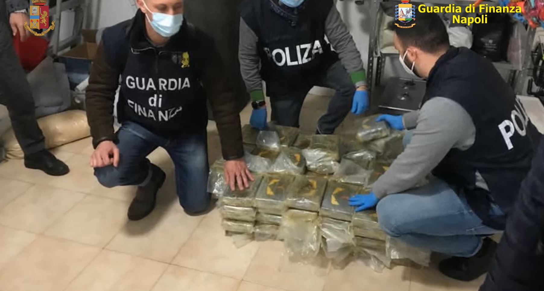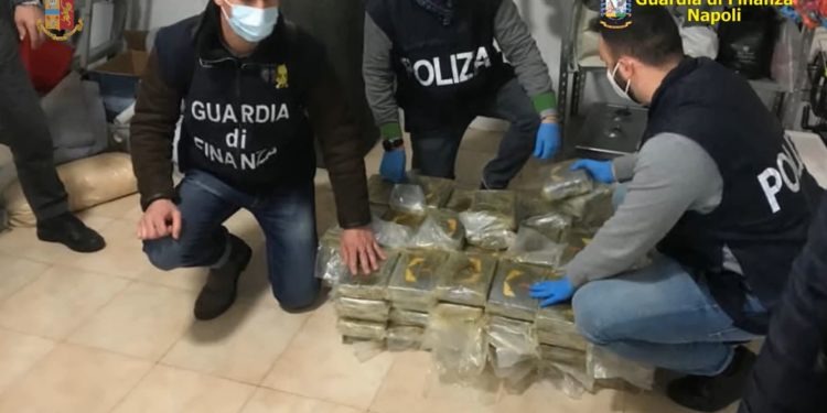 La polizia di Stato e la guardia di finanza di Napoli, nell’ambito di un’attività congiunta nel settore anti-droga, hanno arrestato cinque persone, tra Giugliano in Campania e Marano di Napoli, indiziate di detenzione ai fini di spaccio di sostanze stupefacenti e armi. Sono stati sequestrati, nel complesso, dalla squadra mobile e dal Gico di Napoli, 150 chili di cocaina, 46 di hashish, nove pistole con tanto di munizioni, strumenti per il confezionamento degli stupefacenti e oltre 650mila euro in contanti.