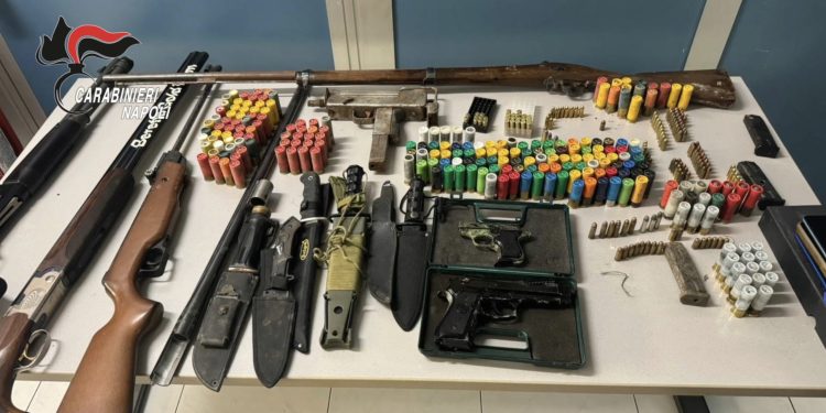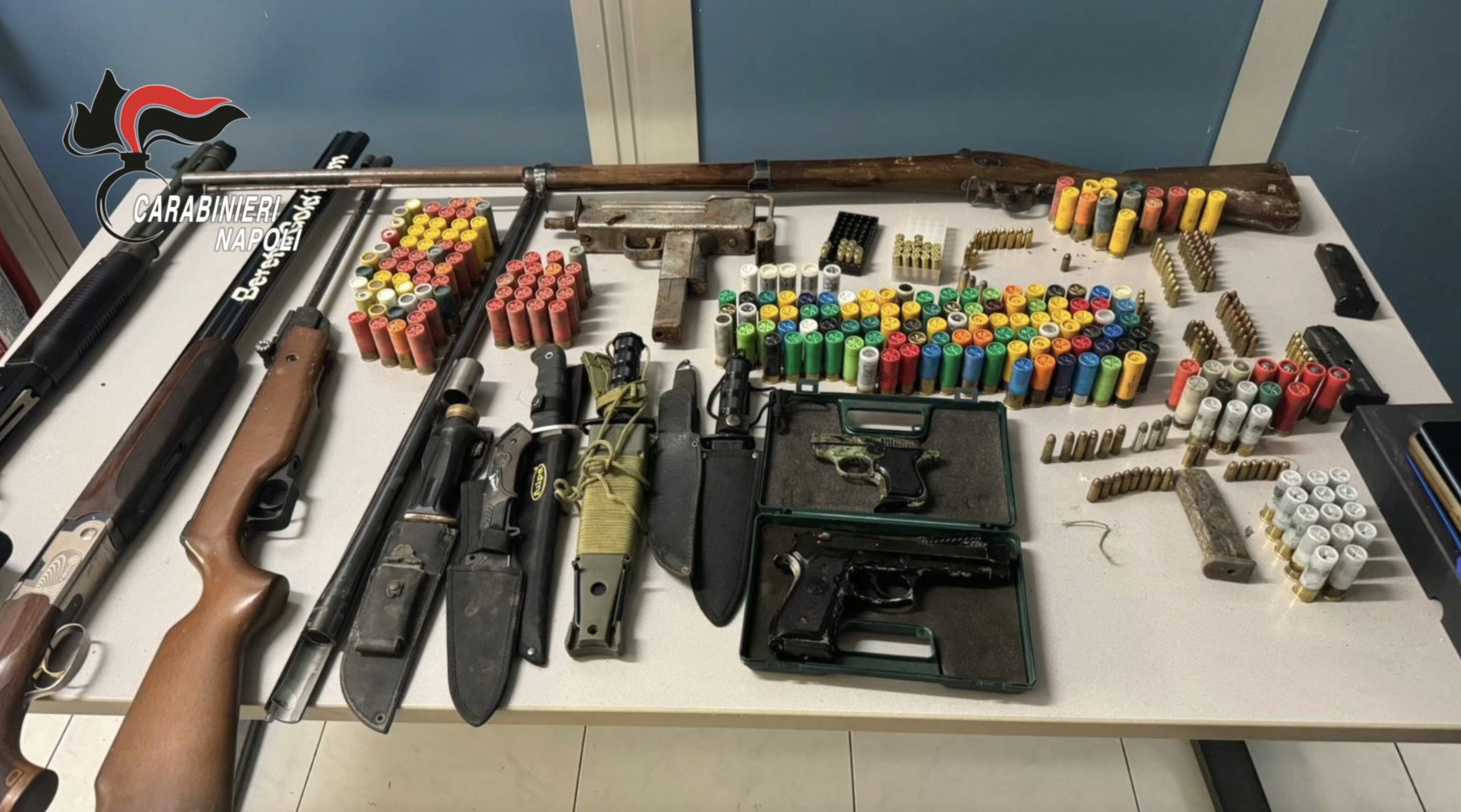 Il blitz è stato coordinato dalla sezione operativa di Pozzuoli, che ha arrestato un 33enne di Marano, già noto alle forze dell’ordine. Durante la perquisizione nella sua abitazione, i militari hanno scoperto un vero arsenale: 2 pistole, 1 mitragliatore, 3 fucili, 6 pugnali, una carabina ad aria compressa e munizioni di vario calibro. Tra le armi sequestrate vi erano una Bruni modificata e una Beretta 98FS, entrambe con matricola abrasa, oltre a una mitragliatrice Uzi calibro 9, un fucile a pompa calibro 12 e uno monocanna ad avancarica. Sei pugnali da guerra e una canna di fucile Beretta erano occultati in un contenitore di plastica interrato nel giardino.