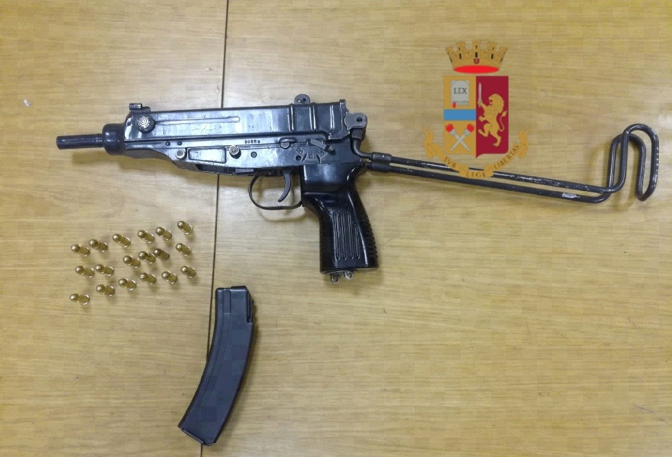 L’altro pomeriggio, gli agenti di polizia del commissariato di Afragola, durante un servizio di contrasto allo spaccio di sostanze stupefacenti, nel transitare nei pressi del Parco Verde di Caivano, hanno notato tre giovani che stavano uscendo da uno stabile occultando qualcosa sotto il braccio. I poliziotti, insospettiti, hanno intimato l’alt ma i tre, per darsi alla fuga, hanno puntato delle armi contro di loro; ne è nato un inseguimento, e uno dei malviventi è stato raggiunto, bloccato e trovato in possesso di una pistola mitragliatrice con 18 cartucce calibro 7,65. F. I., 23 anni, casertano con precedenti di polizia, è stato arrestato per detenzione e porto illegale in luogo pubblico di armi da guerra e munizionamento.