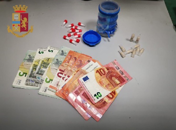Durante i controlli i due sospettati sono stati trovati in possesso di diverse centinaia di euro in contanti. Gli agenti hanno così scoperto che i due, rivelatisi essere spacciatori, avevano occultato 9 cilindri di eroina e una dozzina di involucri di cocaina per un totale di 20 grammi all’interno di un barattolo di gomme da masticare, nascondendo il tutto dietro un muretto. Giuseppe Tixon, 21enne con precedenti di polizia e R.D. 50enne, entrambi napoletani, sono stati arrestati per detenzione di sostanze stupefacenti e denunciati per aver violato le misure anti-contagio previste dal Dpcm del 22 marzo 2020.