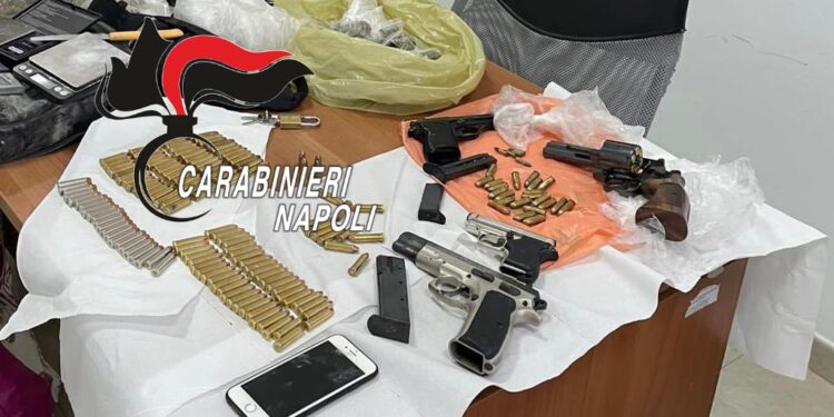 Un arsenale e sostanze stupefacenti nascosti in un magazzino: questa la scoperta dei carabinieri del comando provinciale di Napoli.