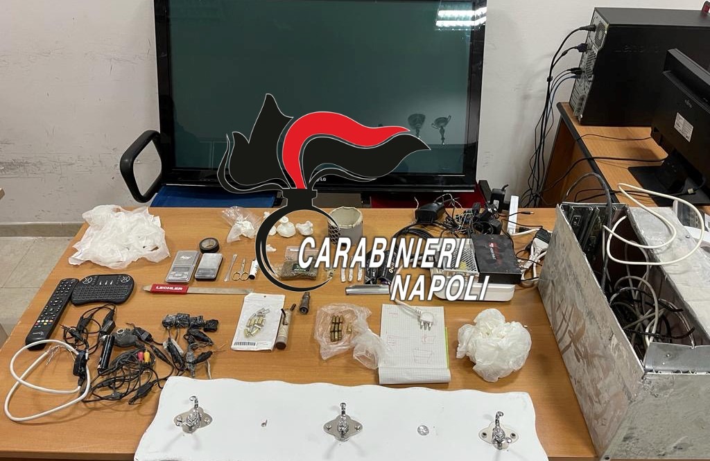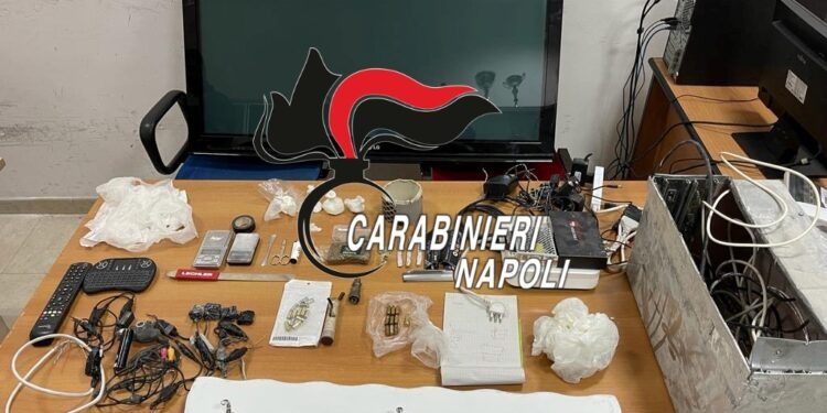 I militari assistono alla scena e intervengono. In due si posizionano davanti la porta di ingresso, gli altri due ai lati dell’uscita sul retro. È proprio da lì che i 3 ospiti escono, pensando di aver eluso il controllo. Bloccati e identificati raccontano che erano lì per acquistare droga. Scatta la perquisizione, sequestrato un sofisticato impianto di videosorveglianza con 7 telecamere, 4 di queste installate all’esterno, e un televisore di 50 pollici dove erano trasmesse in diretta le immagini esterne e interne. E ancora una pistola clandestina artigianale compatibile con proiettili calibro 7,65 e 32 auto (in sostanza un cilindro metallico con un grilletto), 23 proiettili (13 sono a salve), 52 grammi di cocaina, 110 di hashish, una bustina di marijuana, materiale per il taglio e il confezionamento delle dosi.