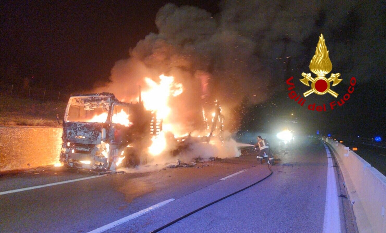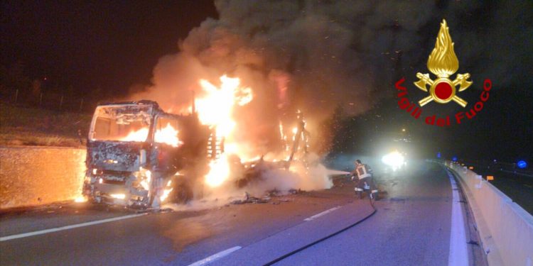 Nella tarda serata di ieri, i vigili del fuoco di Avellino sono intervenuti sull’autostrada A16 Napoli-Canosa, al chilometro 106, in direzione Napoli, nel territorio del comune di Vallata, per un incendio che ha interessato un camion in transito che trasportava pedane in legno. Due le squadre inviate dalla sala operativa del comando di via Zigarelli, quella del distaccamento di Bisaccia è quella del distaccamento di Grottaminarda, le quali hanno spento le fiamme che avvolgevano il pesante automezzo.