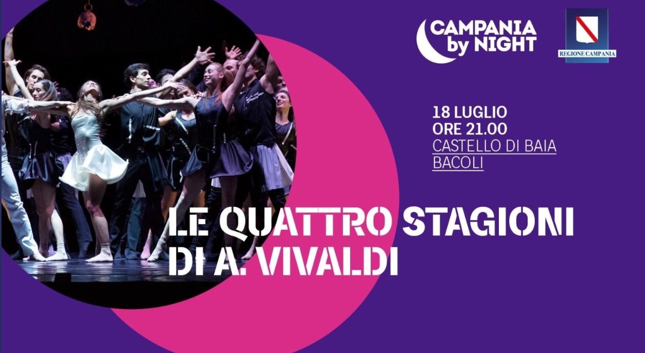 Campania by night proseguirà quindi sabato prossimo con il balletto del Teatro di San Carlo: a partire dalle 21, al Castello di Baia, una coreografia firmata dell’étoile Giuseppe Picone, direttore del corpo di ballo del Massimo napoletano, accompagnerà Le quattro stagioni di Antonio Vivaldi. Una nuova coreografia, questa, che tiene conto dell’emergenza sanitaria, con il distanziamento degli artisti in una innovativa ricerca sul movimento e sul gesto. Il biglietto intero costa 20 euro, mentre il ridotto, riservato a under 30, over 65 e abbonati del San Carlo, 10 euro. Per le prenotazioni ci si può recare presso il botteghino del Teatro di San Carlo o sul sito internet vivaticket.it