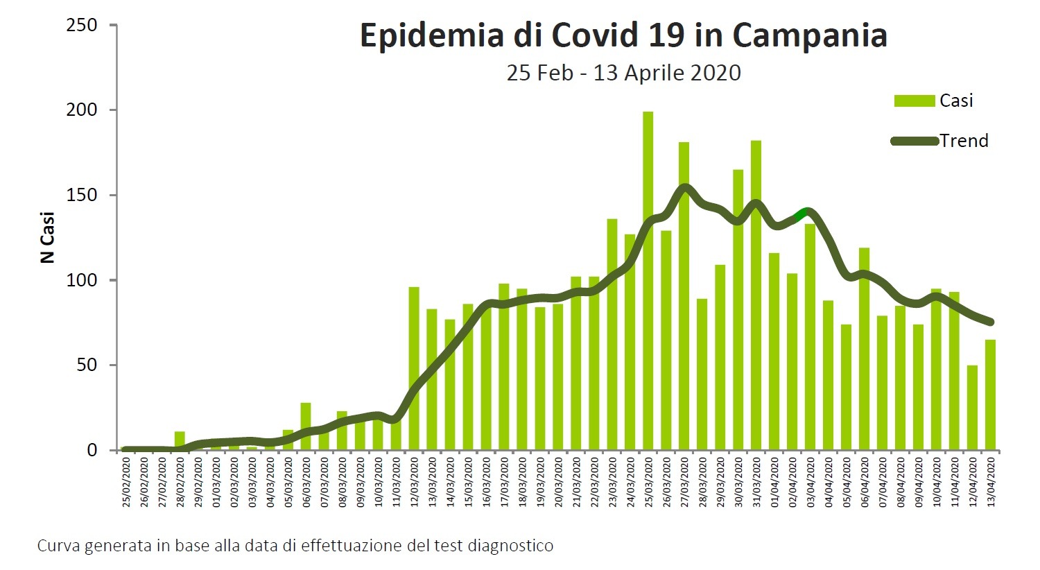Sono oramai passati quasi due mesi da quando, lo scorso 26 febbraio, furono registrati i primi due casi di positività al Coronavirus in Campania: una giovane donna casertana e un tecnico di radiologia della provincia di Salerno, entrambi rientranti da trasferte nel Nord Italia. Due giorni fa, l’Osservatorio epidemiologico della Regione Campania ha pubblicato i primi dati sui numeri del contagio e grafici sull’andamento della patologia sul territorio regionale, prendendo in analisi i soli casi pienamente accertati di infezioni, decessi e guarigioni censiti dal Dipartimento della protezione civile, considerati soltanto se confermati dal referto di laboratorio, mentre non sono contemplati quelli diagnosticati con criterio clinico.
