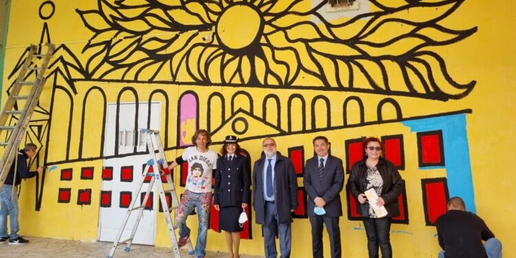 Nell’aria verde c’era il maestro Alessandro Ciambrone che insieme a due detenuti ha realizzato un murale dal titolo “Sole a Carinola”, lo stesso artista, realizzerà, finanziato dal garante dei detenuti campano, un secondo murale nelle aule scolastiche “i colori della cultura e la dieta mediterranea”.
