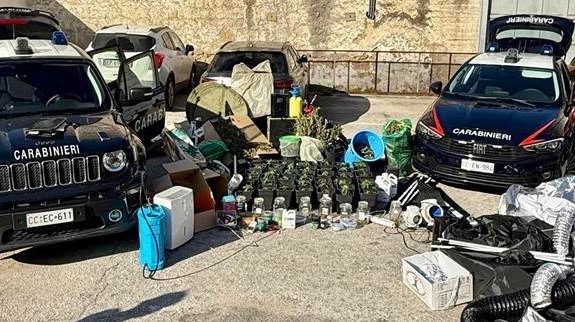 Nel corso della perquisizione, sono state rinvenute 41 piante di marijuana, insieme a 7 kg di sostanza già essiccata conservata in barattoli di vetro, 30 grammi di hashish e una varietà di strumenti per il confezionamento delle dosi. L’appartamento, composto da varie stanze, era stato trasformato in un vero e proprio laboratorio per la produzione e la lavorazione della marijuana. In una delle stanze, i Carabinieri hanno trovato due serre attrezzate con strutture metalliche, teli termici e un sistema di aerazione che ospitavano numerose piante disposte in vasi.