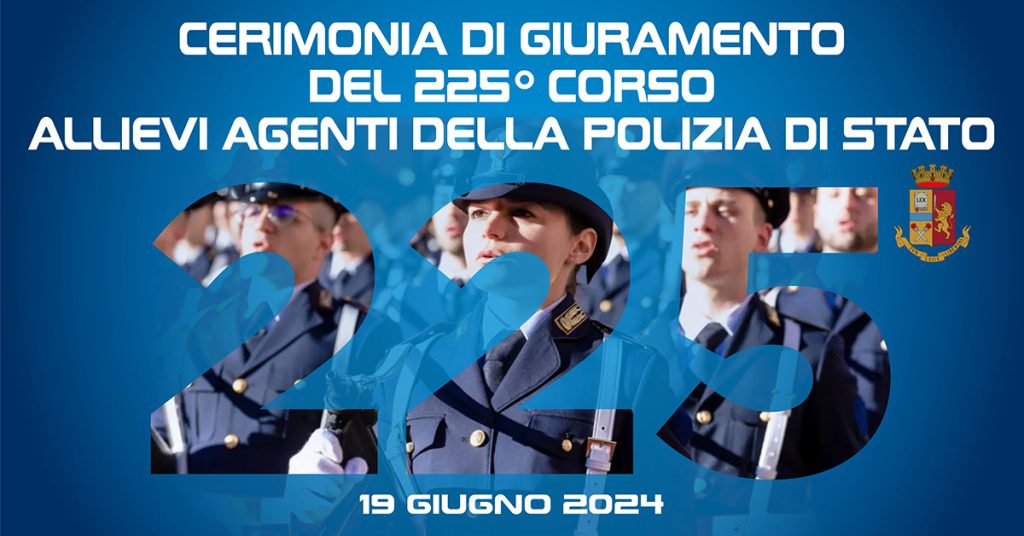 Nella mattinata di domani, mercoledì 19 giugno, alle ore 11, presso la Scuola Allievi Agenti di Peschiera del Garda, avrà luogo la cerimonia di giuramento di fedeltà alla Repubblica per 203 Agenti in prova del 225° Corso Allievi Agenti, alla presenza del Ministro dell’Interno, Prefetto Matteo Piantedosi, e del Capo della Polizia – Direttore Generale della Pubblica Sicurezza, Prefetto Vittorio Pisani.