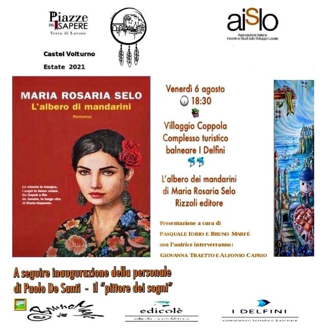Nello scenario del complesso turistico balneare I Delfini si potrà approfondire la conoscenza di Maria Rosaria Selo, notevole scrittrice e sceneggiatrice di cortometraggi e documentari, capace di vincere il premio Anna Maria Ortese con la raccolta di racconti “La donna immaginaria”; la Selo presenterà il suo ultimo romanzo “L’albero dei mandarini” edito da Rizzoli. Con l’autrice interverranno Giovanna Traetto e Alfonso Caprio che condurranno i presenti nei meandri della storia di una donna che attraversa il Novecento come un’onda ribelle e tenace, vivendo una vita eccezionale fatta di fatica sì, ma soprattutto sogni e passione.