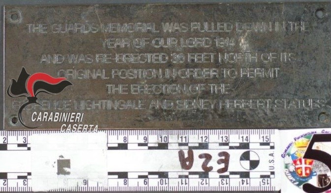 Attraverso mirate perquisizioni e il monitoraggio degli spostamenti del 42enne di Castel Volturno, i carabinieri hanno scoperto che, durante i suoi viaggi all’estero, ha rubato indebitamente altri “souvenir” di pregio, asportandoli da statue e piazze. Nel corso di una perquisizione presso la sua abitazione, è emerso che l’uomo aveva occultato monete, targhe commemorative e frammenti di statue in una cassa di legno. I manufatti, confezionati separatamente, erano accompagnati da cataloghi riconducibili a siti culturali. In particolare, è stata riscontrata la provenienza di una targa sottratta dal mezzo busto di John Ray, esposto al British Museum di Londra, e di una targa in bronzo prelevata dal Guards Crimean War Memorial nella piazza Waterloo della stessa città.