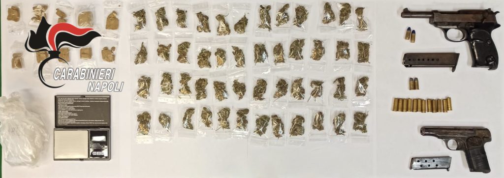 L’attività si è concentrata nel lotto 5. Precisamente, in un pozzetto sono state trovate avvolte in un panno sporco due pistole: una Beretta P38 con matricola abrasa e una Browning. Inoltre, sono stati rinvenuti 14 proiettili calibro 38 Special, 48 dosi di marijuana, 10 di hashish e un bilancino di precisione. Tutto il materiale è stato sequestrato e le armi saranno sottoposte ad accertamenti balistici e dattiloscopici per verificare se siano state utilizzate in fatti di sangue.