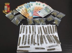 Operazione molto simile portata a termine dagli agenti del commissariato di Secondigliano, ai danni di un 23enne napoletano con precedenti di polizia. Nell’ambito delle operazioni di prevenzione e contrasto alla detenzione e allo spaccio di sostanze stupefacenti, gli agenti erano in servizio in via Giovanni Pascoli II Traversa, dove hanno notato un ragazzo con fare sospetto. Il giovane, dopo aver prelevato qualcosa da un muretto lungo la strada, l’ha consegnato a una persona, ricevendo in cambio una banconota. Gli agenti sono intervenuti a bloccare lo spacciatore, e sono scattate le perquisizioni. In possesso del 23enne è stata rinvenuta la somma di 245 euro e dietro il muretto menzionato in precedenza, c’era nascosto un sacchetto con 34 stecche di hashish, per un peso complessivo di 32 grammi e 11 bustine di marijuana, per un peso complessivo di 12 grammi. Il 23enne, Gaetano Iodice, è stato arrestato per detenzione e spaccio di sostanze stupefacenti.
