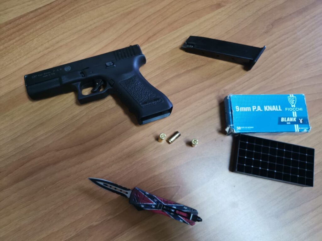I carabinieri della compagnia di Aversa nel corso di un servizio di controllo, eseguito nei pressi dei luoghi e dei locali maggiormente frequentati dai giovani della movida, hanno denunciato in stato di libertà un 17enne per possesso di uno sfollagente telescopico. Altri due minorenni, un 17enne ed un 16enne, che viaggiavano a bordo di una minicar, sono stati denunciati perché trovati in possesso di pistola una scenica priva di tappo rosso ed un coltello a scatto.