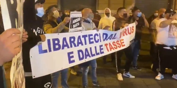 Nel giorno in cui si attende la formalizzazione del passaggio della Campania a zona rossa, Napoli continua a essere teatro di manifestazioni e proteste. Nelle ultime ore, cittadini e lavoratori si sono riuniti in più punti della città, a poca distanza fra loro, per urlare il loro malcontento per le nuove misure restrittive e per il periodo di crisi che sta mettendo in ginocchio numerose famiglie, venutesi a trovare senza reddito a causa delle chiusure anti-Covid. Una manifestazione è andata in scena tra via Sauro e via Cesario Console, dove si sono riuniti i lavoratori mercatali che, bloccando il traffico veicolare, hanno chiesto di essere inclusi negli aiuti economici previsti dal Governo. Chiedono misure di sostentamento anche i lavoratori di varie categorie che si sono ritrovati nelle non lontane piazza del Plebiscito e piazza Municipio: qui è emersa la richiesta di erogazione immediata dei sussidi economici, con una più equa distribuzione delle risorse a disposizione, in modo che non siano solo le classi meno abbienti a sentire il peso della crisi.